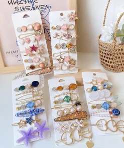 Fashion Pearl Crystal Acrylic Hair Clips Set for Women Retro Barrettes Geometric Hairpin Girl Hair Accessories Jewelry