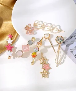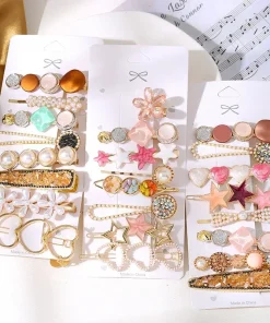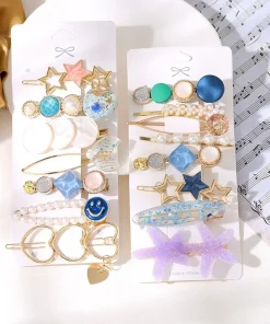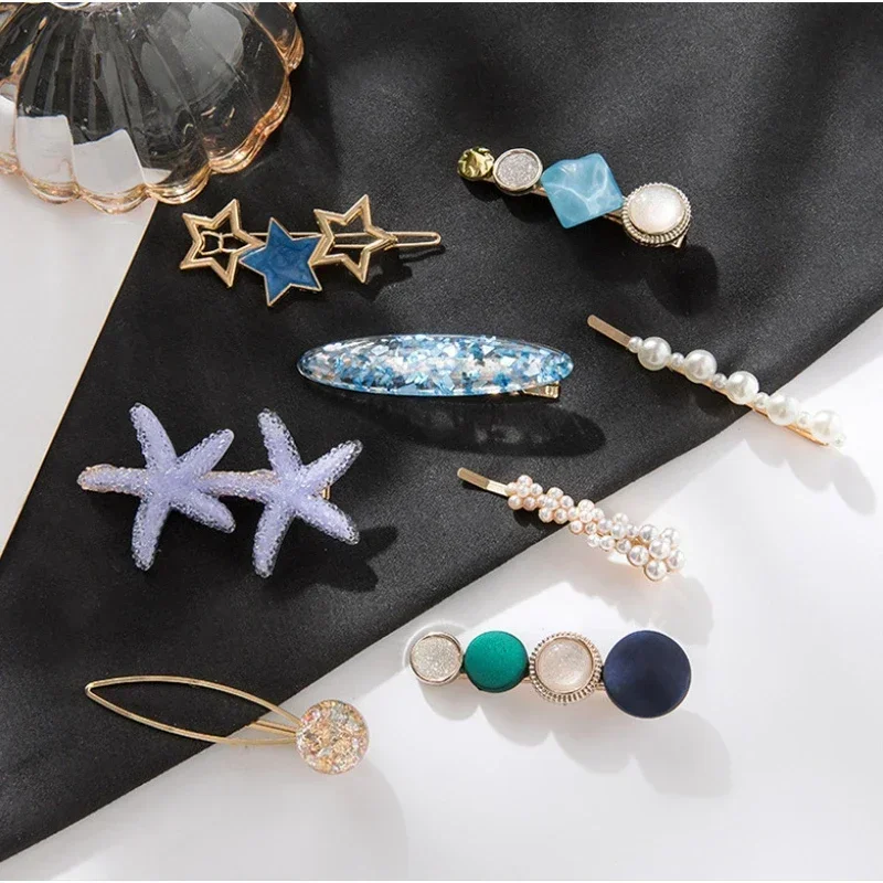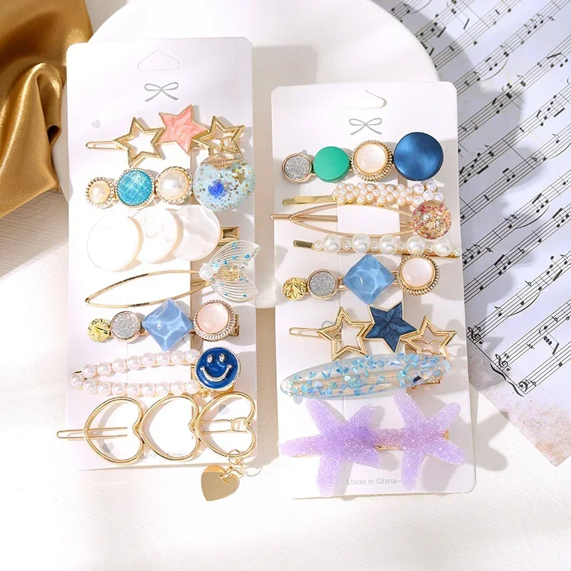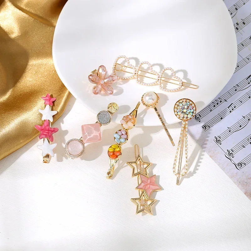 Fashion Pearl Crystal Acrylic Hair Clips Set for Women Retro Barrettes Geometric Hairpin Girl Hair Accessories Jewelry
